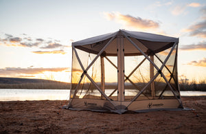Gazelle Gazebos are portable and easy to set up, making them one of the most versatile shelters on the market. Whether you’re a car camper, RV enthusiast, or just hanging out in the backyard, Gazelle has you covered. Our G5 5-Sided Gazebo offers the same great features of our popular G6 6-Sided Gazebo but in a more compact and lighter version. Featuring 60 square feet of usable space and standing 85” tall the G5 provides enough room for up to four people and a table. With its unique hub design, the G5 sets up in under 60 seconds, there is no assembly required and no loose parts. Packing up is just as quick, and it fits easily back into the included oversized duffle bag. The G5 5-Sided Gazebo is built with our exclusive TriTech mesh, a single filament mesh that features increased durability and improved airflow, without compromising the ability to keep even the smallest bugs out. The polyester shell and roof material is waterproof and features a UV50+ rating protecting you from the sun and rain. In addition, optional wind panels are available and simple to attach if necessary. Included with your gazebo are Gazelle All-Terrain Stakes allowing you to stake down your gazebo in even the toughest terrain. Bring a G5 Gazebo to your next outdoor gathering to create the perfect hang-out.